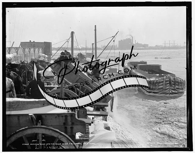 Dumping snow,river,removal,blizzard,New York,NY,Detroit Publishing Company,1899