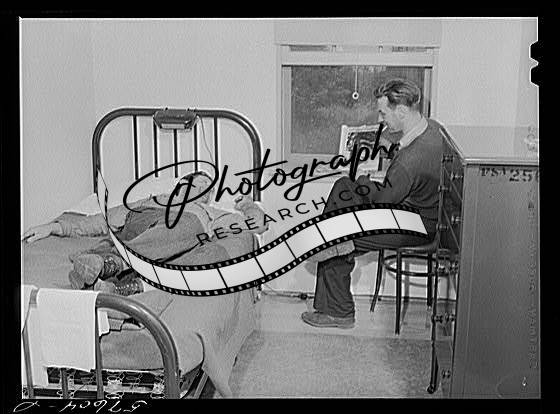Title: Workers from electric boat company in recreation room of new dormitory for workers in defense industries. Groton, Connecticut. Constructed and managed by FSA (Farm Security Administration)