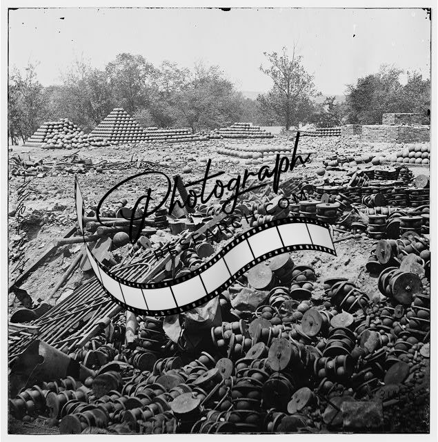 Grounds,ruined Arsenal,scattered shot,shell,fallen,Richmond,Virginia,VA,1865