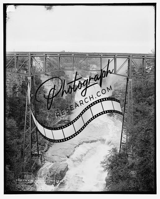 Railroad bridge,water,canyons,Rainbow Falls,Ausable Chasm,New York,NY,c1905