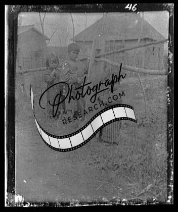 Three Ainu children,fence,villages,buildings,structures,nitrates,A Genthe,1908