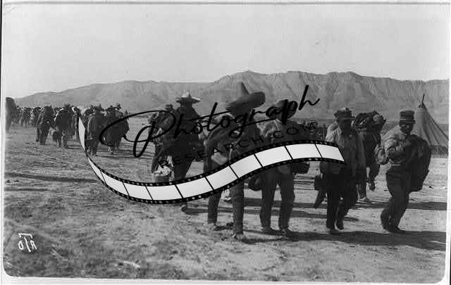 Title: [Large groups of Mexican men (soldiers?) during the Mexican Revolution: side view, standing]