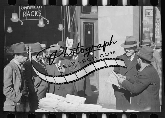 Group of men on 7th Avenue,28th Street,New York City,NYC,November 1936,FSA