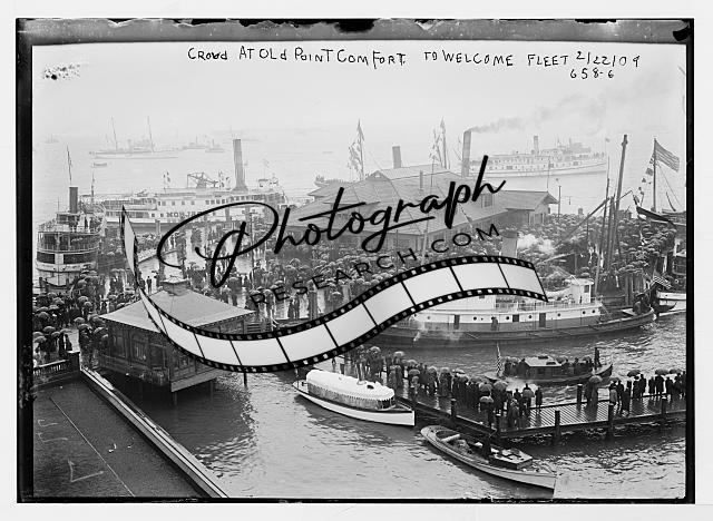 Crowd,Old Point Comfort,Hampton,Virginia,VA,MOBJACK steamship,1909