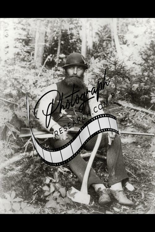 Bearded man armed with ax,rifle,hunting knife,two pistols,Maine,ME,1886