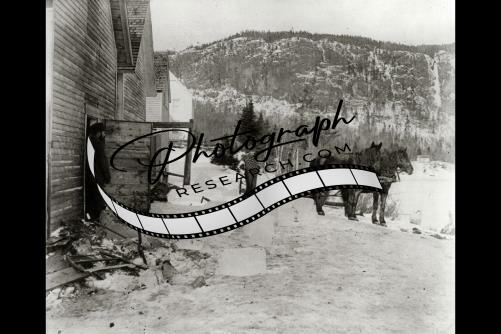 Filling ice house at Mount Kineo,Moosehead Lake,Maine,ME,1889,horses,men