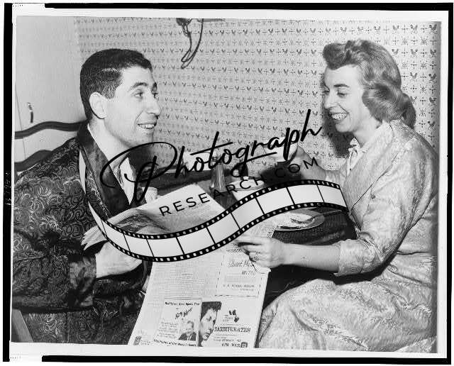 Dr. Joyce Brothers having breakfast,reading newspaper with her husband Milton