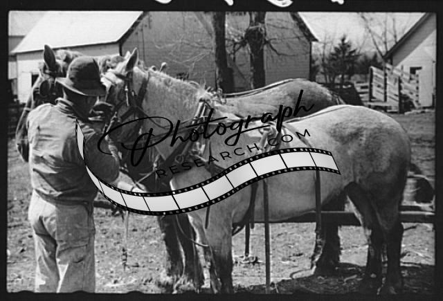 Title: Leading horses to the barn after unharnessing, Grundy County, Iowa