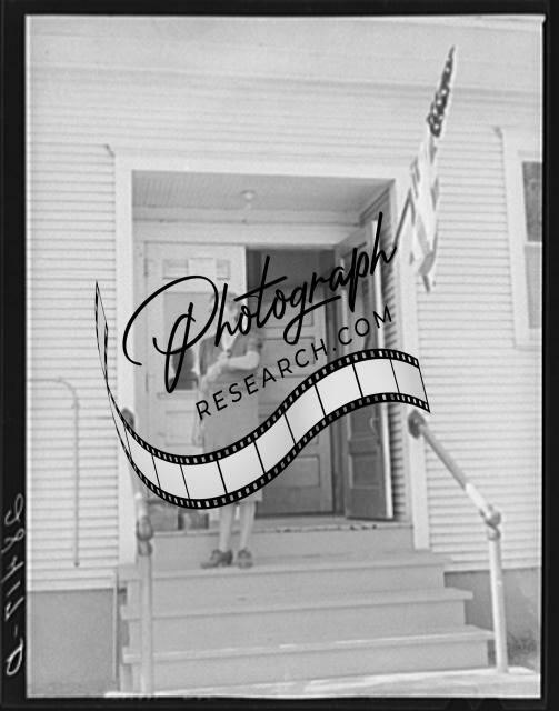 Title: Children wave goodby to their teacher as they leave school. Grundy County, Iowa
