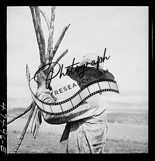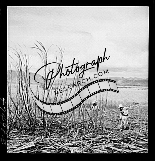 Title: Guanica, Puerto Rico (vicinity). Harvesting sugar cane in a burned field. Burning the cane gets rid of the dense leaves and makes cutting the unharmed stalks easier