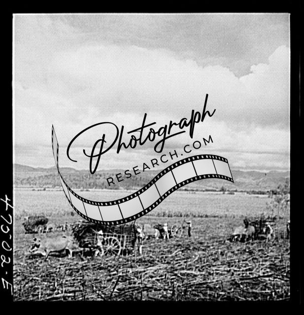 Title: Guanica, Puerto Rico (vicinity). Harvesting sugarcane in a burned field. Burning the sugar cane gets rid of the dense leaves and makes cutting the unharmed stalks easier