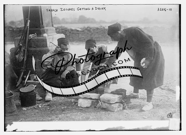 French Zouaves getting a drink,men,ladle,pot,French Army,Bain News Service