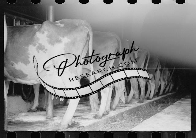 Guernsey milk cow in stall,dairy farm,Dakota County,Minnesota,MN,FSA,1939,4