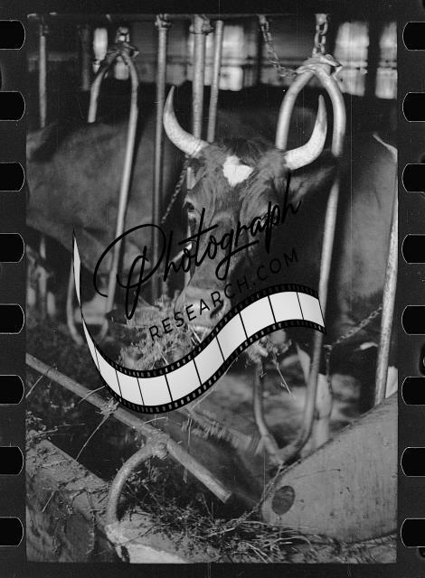 Guernsey milk cow in stall,dairy farm,Dakota County,Minnesota,MN,FSA,1939,4