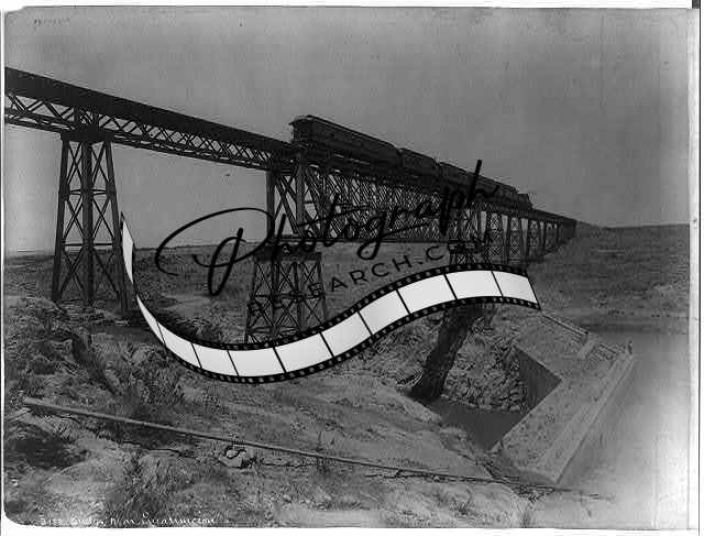 Bridge near Encaruncion,Mexico,Train on bridge below dam,1884-1885,W.H. Jackson