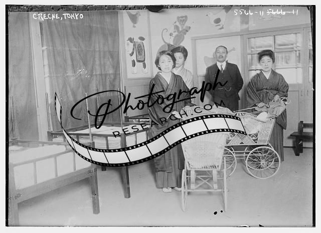 Creche,women,baby carriages,robes,cribs,nursery,Tokyo,Japan,Bain News Service
