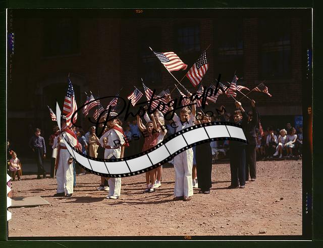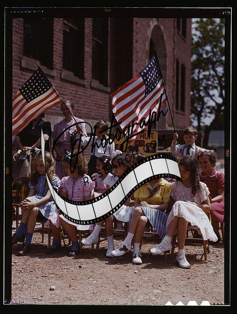 Children patriotic demonstration,American flags,Southington,Connecticut,CT,1942