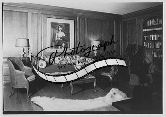 Title: Gypsy Rose Lee, residence at 153 E. 63rd St., New York City. Living room, fireplace, sharp