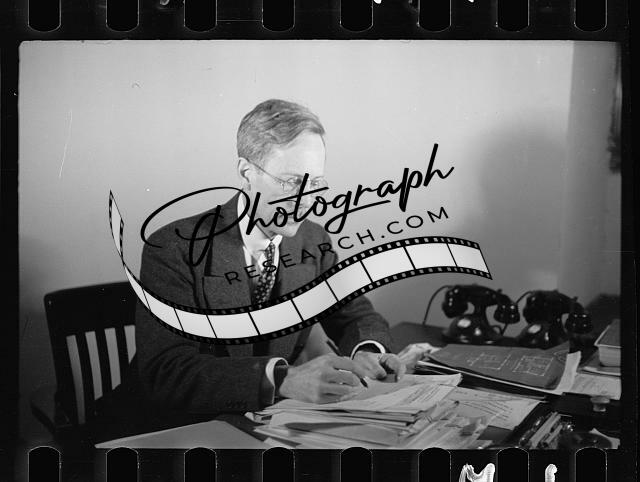 Men,offices,desks,pens,tables,portrait photographs,1935