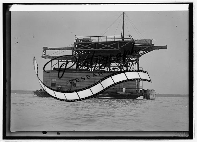 Langley house boat on the Potomac showing the launching machinery,1912-1930
