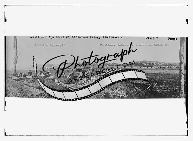 Austrian 15 cm. guns in operation before Drozodowice,artillery,military,Bain