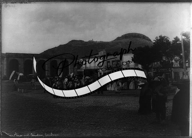 Plaza,fountain,Zacatecas,Mexico,c1884,people