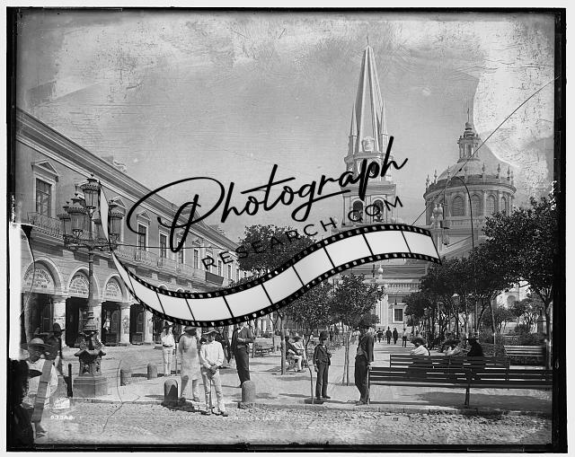 Plaza de Armas,cathedral,religious building,spire,street,Guadalajara,Mexico,1880