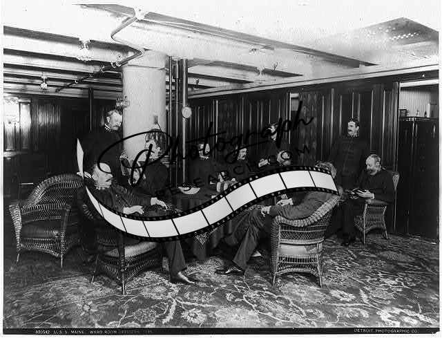 U.S.S. MAINE,Ward Room Officers,1896,relaxing in room