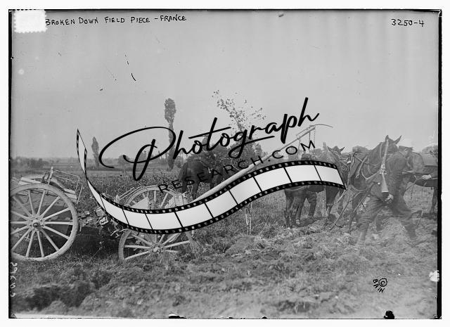 Broken down field piece,France,horses,men,Bain News Service