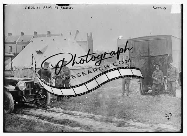 English Army at Amiens,France,automobile,tent,men,Bain News Service