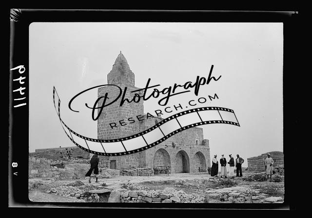 Title: Halhul village at kilom[eter] 30 on Hebron road. Threshing floors of Halhul showing sun through a haze with Neby Yunis shrine, closer view