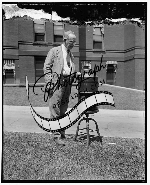 S.P. Ferguson with gauge which measures snow,hail,Weather,Harris & Ewing