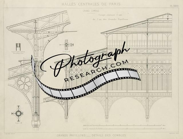 Illus. in: Monographie des halles centrales de Paris, construites sous le regne de Napoléon III. et sous l'administration de ... Haussmann ... par V. Baltard ... et ... F. Callet ... Paris : A. Morel, 1863, plate 33.