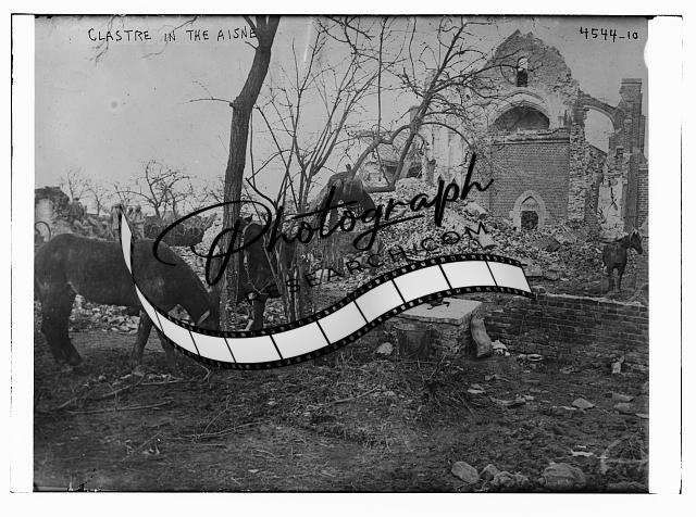 Clastre in the Aisne,France,horses,rubble,damaged buildings,war damage?,Bain