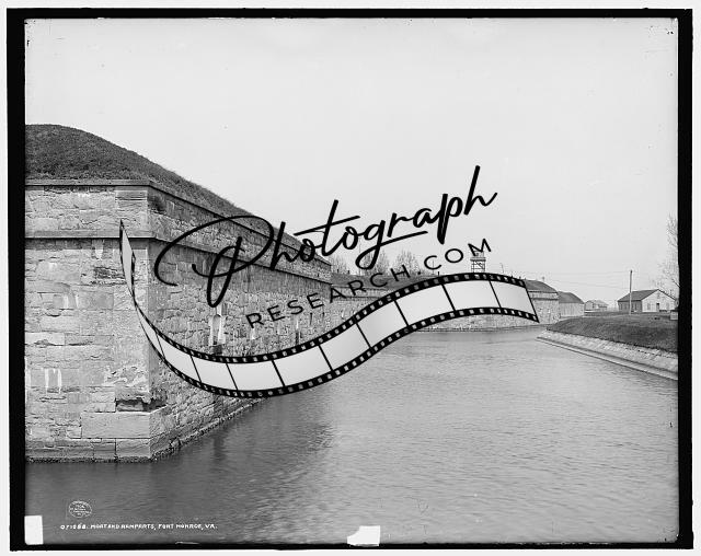 Moat,ramparts,stone structures,Fort Monroe,Virginia,Detroit Publishing Co,c1908