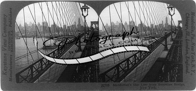Photo of Stereograph,Manhattan's Skyline from Brooklyn Bridge,New York,NY,c1930