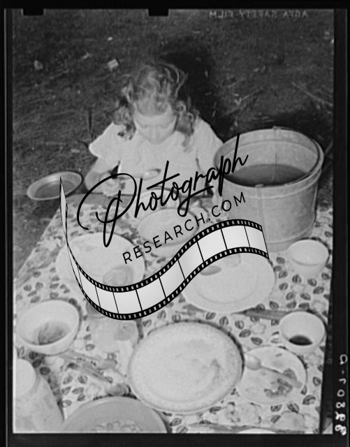 Title: White migrant berry picker and son eating dinner near Hammond, Louisiana