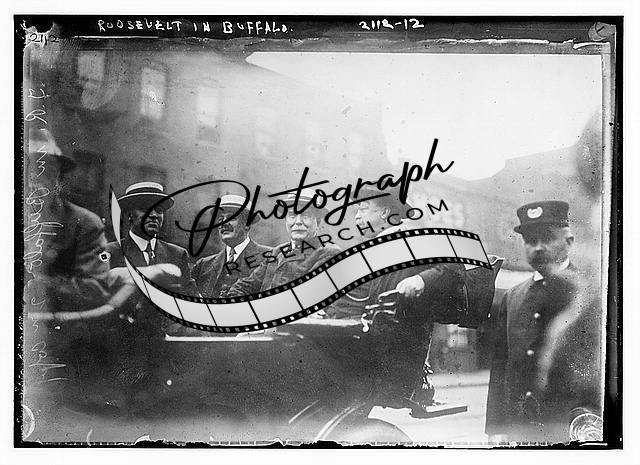 President Theodore Roosevelt,1858-1919,in Buffalo,men in back of automobile
