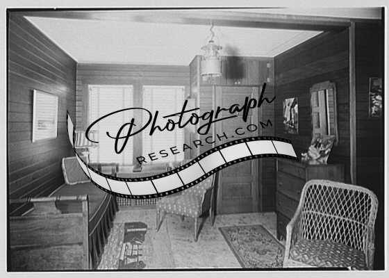 Title: Hans Hinrichs, residence in Quogue, Long Island, New York. Miss Hinrich, at desk