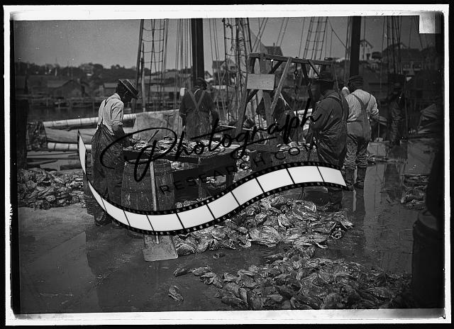 Unloading Gorton's codfish,piers,wharves,fishing industry,Gloucester,MA,1900