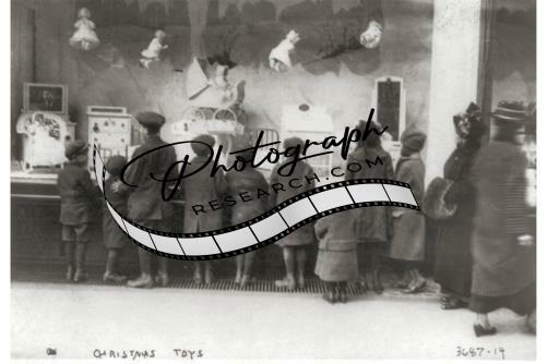 Christmas toys,small children gazing through Macy's toy window,New York City,NYC