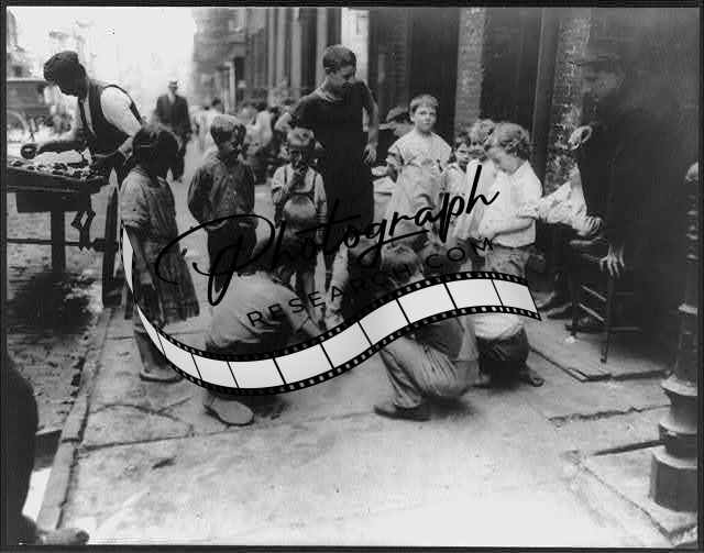 Children playing a game on the sidewalk,New York City,Cherry Hill district,1907
