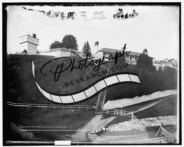 Old Fort Mackinac,stairs,water bodies,buildings,cliffs,Island,Michigan,MI,c1901