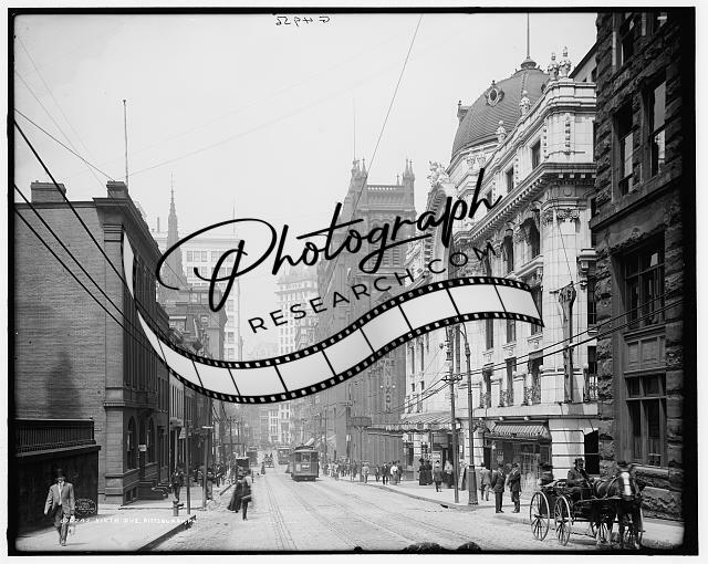 Sixth Avenue,roads,buildings,street cars,carts,Pittsburgh,Pennsylvania,PA,c1908