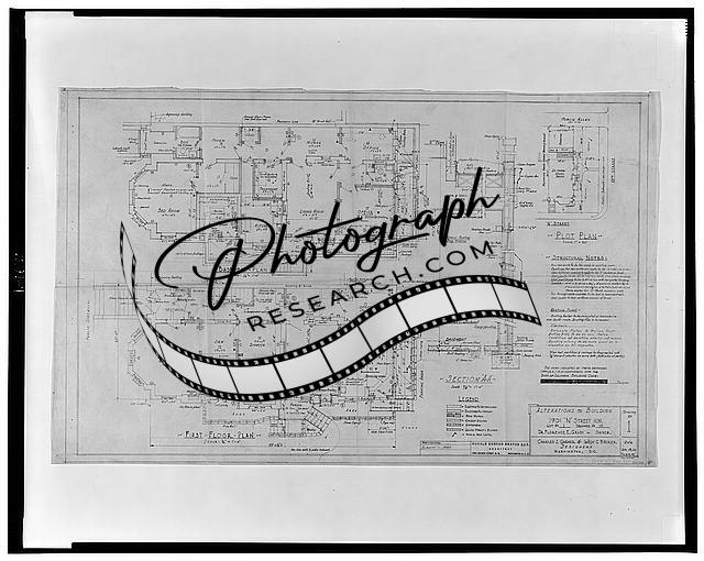 Conversion of a row house into an apartment house and medical office ("building") for Dr. Florence E. Grady, 1901 N Street, N.W. (lot 1, square 115), Washington, D.C. Plot, basement, and first floor plans