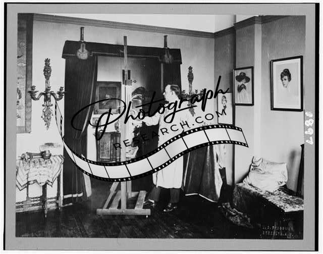 Hamilton King,standing at easel, 1916 / L.C. Crossman