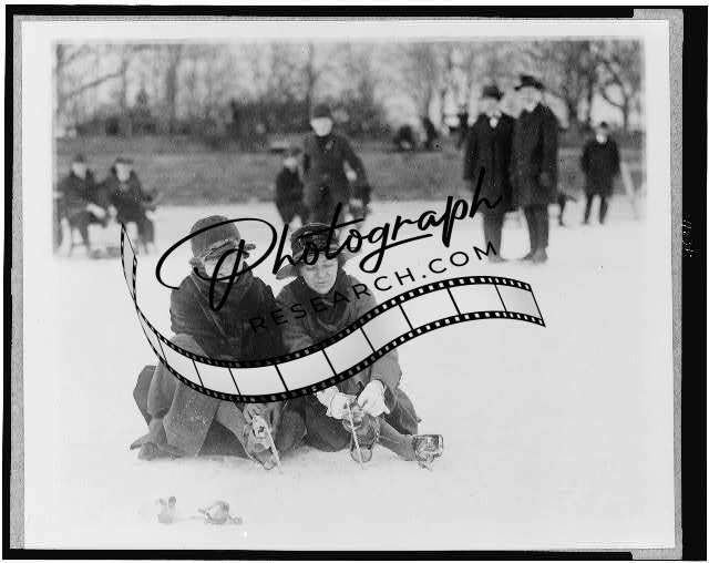 People seated on snow,putting on Ice Skates,Ice Skating,Washington,DC,1909-1932