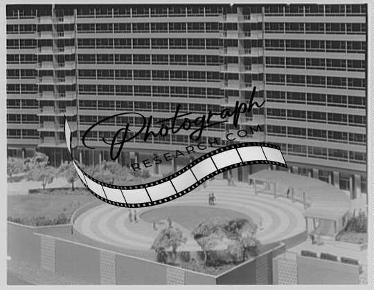 Title: Harrison Towers, East Orange, New Jersey. Model, rear, high viewpoint