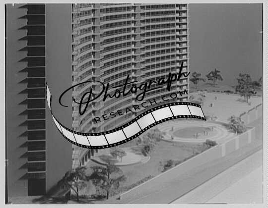 Title: Harrison Towers, East Orange, New Jersey. Model, rear, low viewpoint
