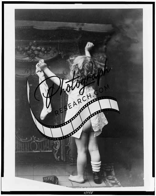 Christmas Eve,1901,girl hanging up stocking, fireplace